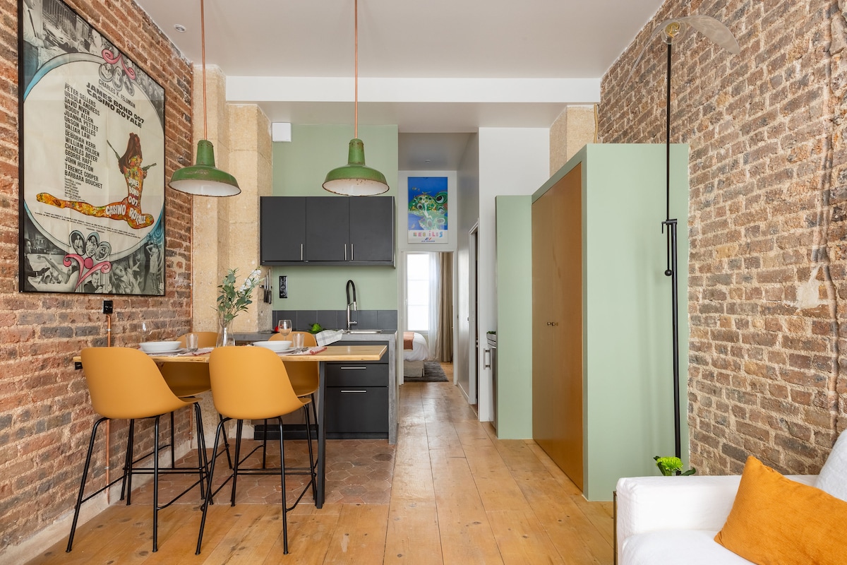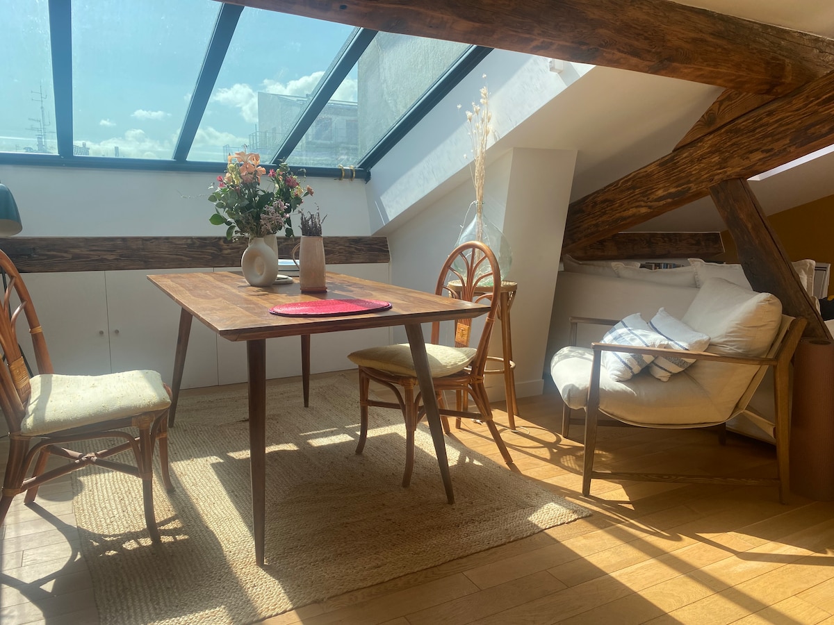 Architect-designed loft with 4m ceilings & rare 25m² private terrace in Paris’s chic Montorgueil district. Once a grand 1700s atelier, now a luxurious retreat blending historic elegance and modern design. Wake to sunlight streaming through tall windows, enjoy coffee on your terrace as Paris wakes up. Bedroom with queen size bed, 160 cm. Sonos, Netflix & ultra-fast Wi-Fi. Step into Montorgueil — bakeries, cafés & wine shops. Walk to the Louvre, Marais & Seine. Live the Parisian dream.