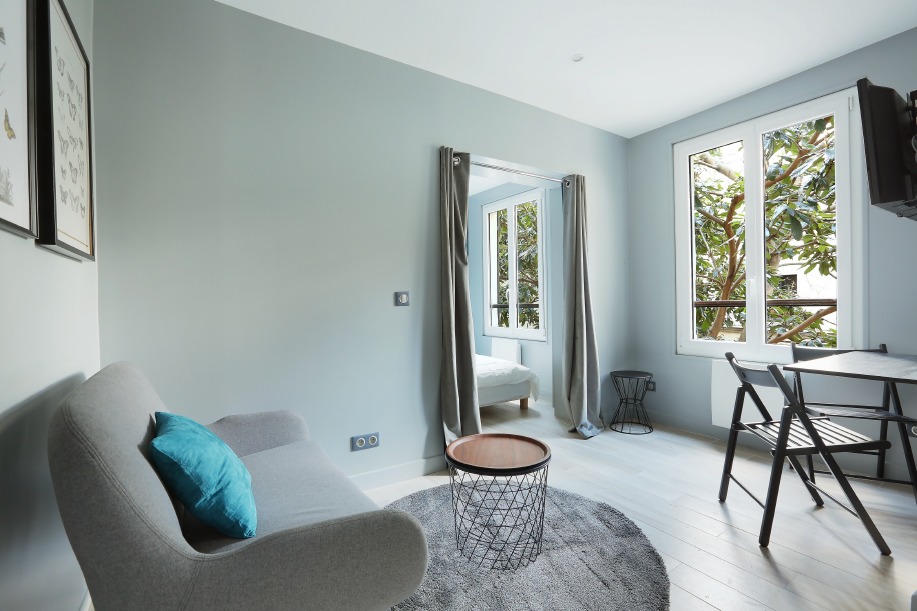 Grand studio sur cour situé dans le 9ème arrondissement, refait à neuf et décoré avec goût. Une fois passé le porche, vous arriverez sur une cour calme et ensoleillée. Très spacieux et fonctionnel, avec sa grande hauteur sous plafond, il peut accueillir 4 personnes. 1 chambre avec lit double sur la mezzanine, 1 canapé-lit pour 2 personnes. WIFI et TV à disposition. Il se trouve à 2 min du M° Poissonnière ou 5 min du M° Bonne Nouvelle.