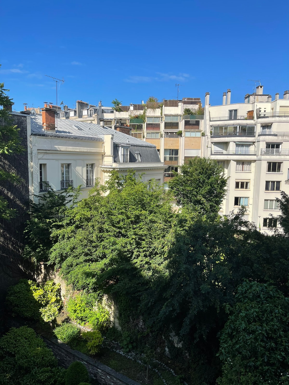 My typically Parisian, well-lit and AC equiped apartment is on the last floor of a charming apartment building with an elevator. It is in the hip Rue des Martyrs area, with a lively local presence and many cafés, bars and restaurants. It is only a short walk to Montmatre, the Moulin Rouge and Opera, and 3 metro lines (2,7,12). There is a magnificent view from the living room balcony over the roofs of Paris and the Eiffel tower. Well equiped kitchen and high-speed wifi.