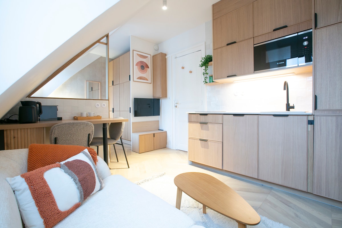 Magnifique studio idéalement situé sur la Place de la Madeleine, offrant une vue imprenable sur l'église de la Madeleine. Ce logement exceptionnel, entièrement refait à neuf et climatisé, est conçu dans un style cabane chic et chaleureux, vous promettant un séjour mémorable au cœur de Paris. Vous pourrez également profiter de deux terrasses extérieures, la première donnant accès à une sublime vue panoramique sur l'église de la Madeleine, et la seconde offrant une ambiance intime "cosy cabane".