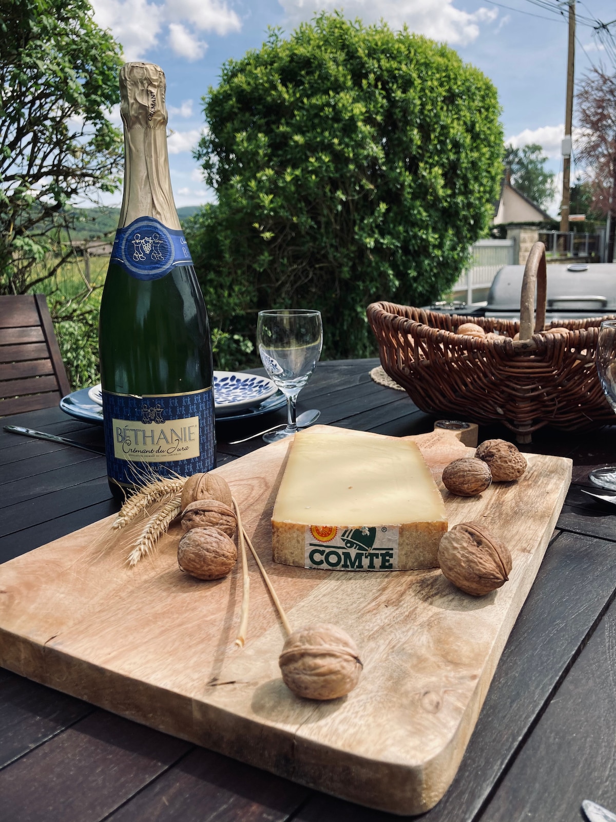"la Fugue enchantée : un espace calme, atypique et bien équipé. En centre bourg, à quelques minutes des commerces et de la gare TGV/TER (aucunes nuisances sonores), cette maison indépendante de 104 m² peut aisément accueillir 6 à 8 personnes. Grande terrasse avec vue sur les pâturages. Au cœur des paysages viticoles et forestiers du Jura, vous profiterez des activités sportives et culturelles, des manifestations locales, des produits locaux et des sites patrimoniaux et naturels remarquables.