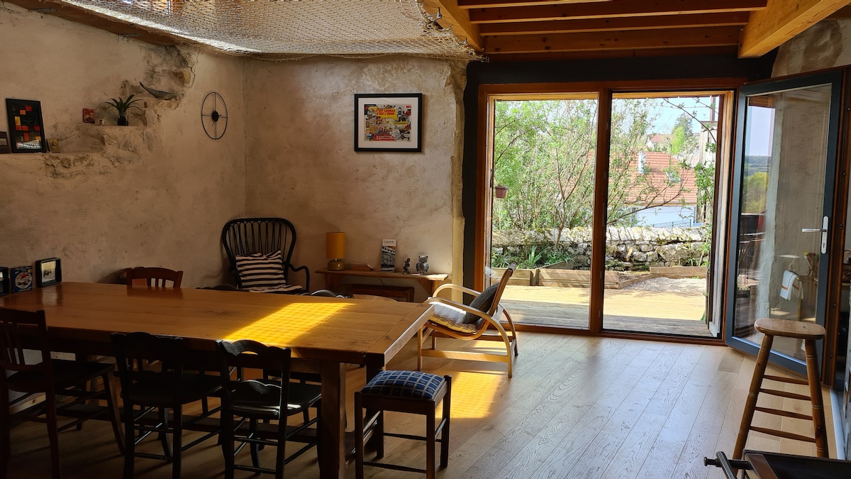 Nous vous accueillons dans cette dépendance de notre maison de 1762. Cette ancienne ferme comtoise se situe en bord de la Loue et offre une jolie vue sur le mont Poupet. Calme assuré en pleine nature La maison est le point de chute idéal pour visiter le Jura et le Doubs : - Salins les Bains à 10 km avec ses thermes et la Grande Saline (UNESCO) - Arbois à 10 km, réputé pour ses vignobles - Arc et Senans à 10 km avec la Saline Royale (UNESCO) - Besançon à 30 km, capitale de la Franche Comté ...