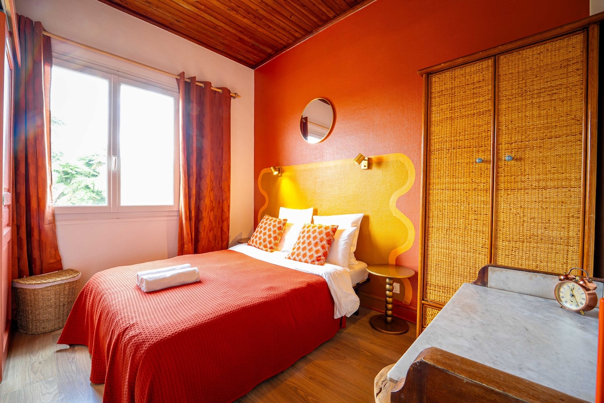 Découvrez cette chambre de 20m² climatisée, équipée d'un lit en 160 avec matelas de 55 cm d'épaisseur. Attention : cette chambre n'est pas une chambre familiale. Les enfants de -8 ans ne sont pas acceptés. Retrouvez le plaisir dune guest house en partageant les espaces de vie : salle à manger, salon et cuisine tout en bénéficiant de votre espace privé. Vous pourrez aussi prendre le temps et vous détendre dans le salon. Les différentes cafetières sont à votre disposition ! Parking privé.