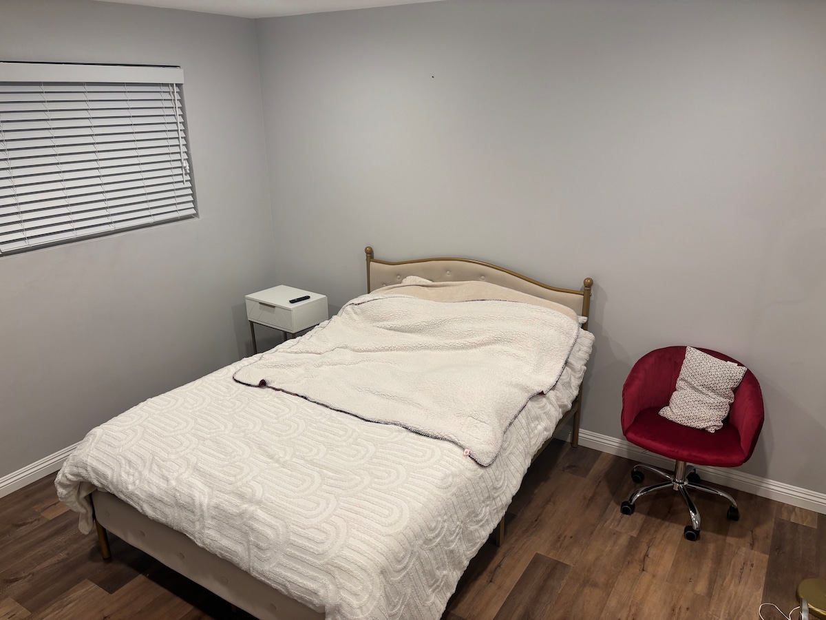 This beautiful guest suite has abundant of natural sunlight. Ideally located for easy access to all areas of Los Angeles; 15 min drive to DTLA, 30 min LAX with light traffic. Walking distance to restaurants; (Italian, Japanese, Mexican, Starbucks, etc), the Montebello Golf Course, TOPGOLF & Country Club. Situated in a nice, quiet and safe Neighborhood. As featured in the pictures, the room comes with one queen sized bed, and one full sized bed. There is No TV in the room.