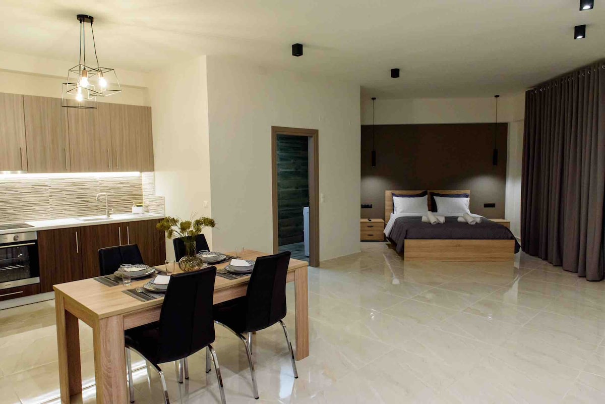 Luxurious Design, Mainalo Amazing view, Central Location!! Simone Luxury Suite is a luxurious 82sqm apartment on the 4th floor, ideally situated at the heart of Tripolis’ historic, shopping & nightlife districts! An exquisite & modern designed residence, Simone Luxury Suite offers even to the most demanding guest a truly exclusive experience of Tripolis’ best with a great view of Mainalo Mountain. Remote work amenities (50mbps internet &dedicated workspace) are provided.//Pet friendly!