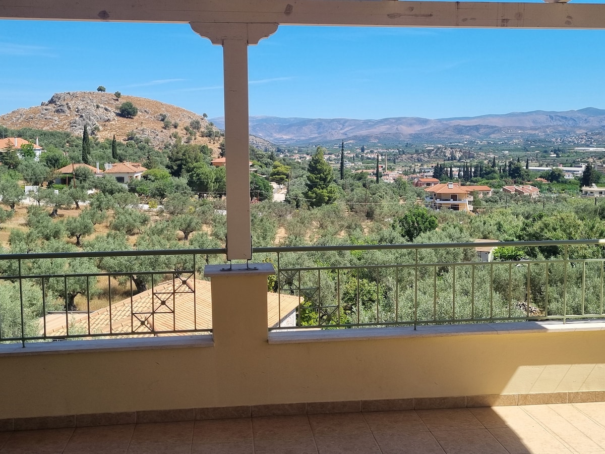 The house is located on the outskirts of Nafplio. It is surrounded by a wonderful garden full of olive and orange trees and various plants, parking space for the guests, beautiful view from the 30 m2 veranda and from every window at the house.