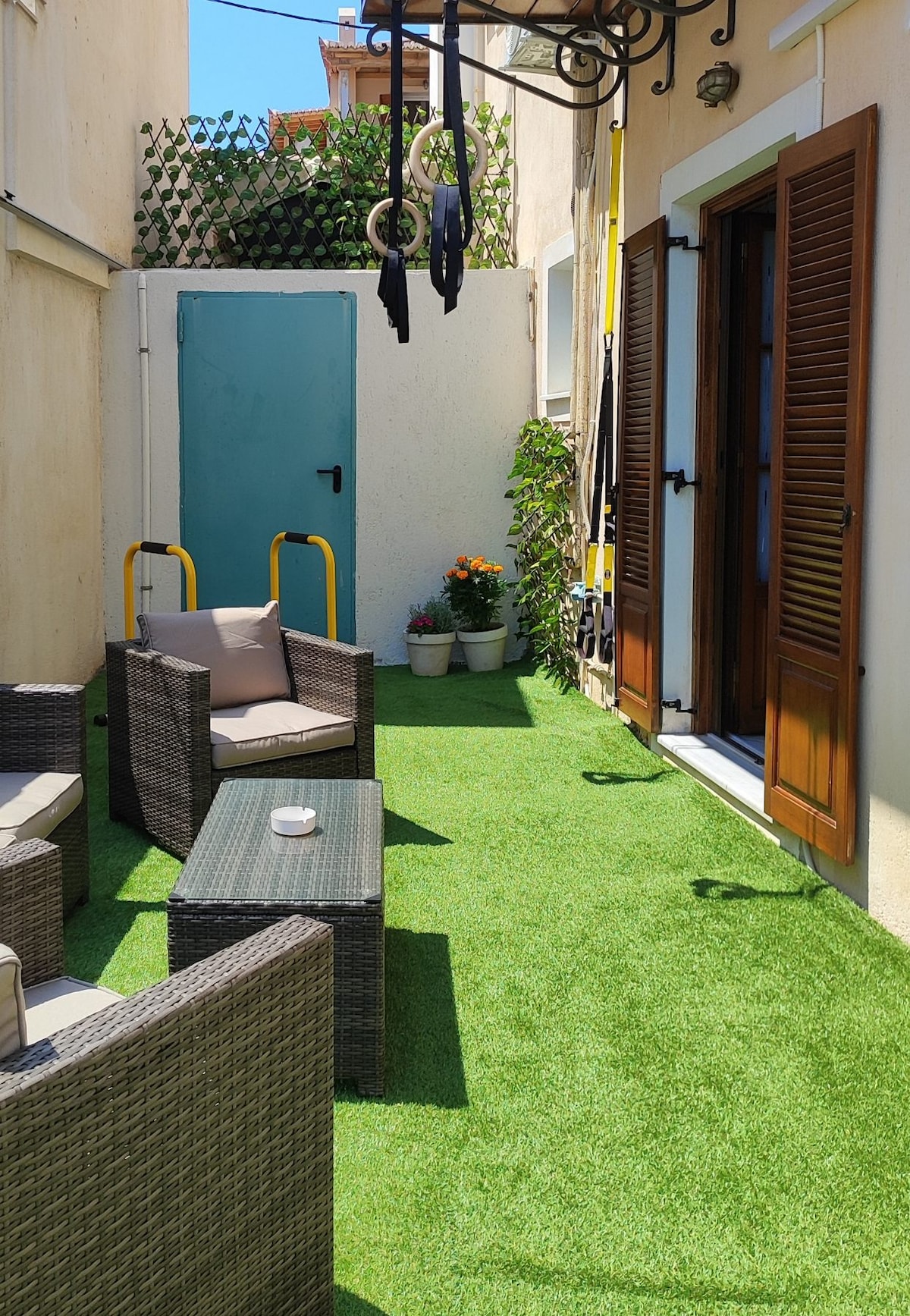Welcome to our exquisite rooftop garden oasis nestled in the heart of Kalamata, Greece. Our rooftop boasts a luxurious private pool, perfect for refreshing dips under the Mediterranean sun. As the day turns into night, gather around our projector for open-air movie nights with the starry sky as your backdrop. We also feature a small gym equipped with what you need to stay fit while enjoying panoramic view. Book your stay with us today and elevate your travel experience to new heights.