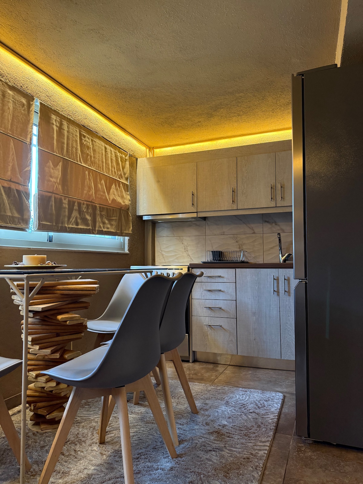 Discover IKIAN | Dimitsana Center Escape, an accommodation with entrance on a central alley in the heart of Dimitsana. Just steps from cafés, tavernas, and landmarks, it offers the ideal setting to experience the village’s authentic atmosphere. Inside, the suite blends elegant décor with comfort and full amenities: a queen-size bed, equipped kitchen with espresso machine, kettle, cookware, and microwave, HD TV, fast Wi-Fi, and self check-in. Perfect for couples and travelers
