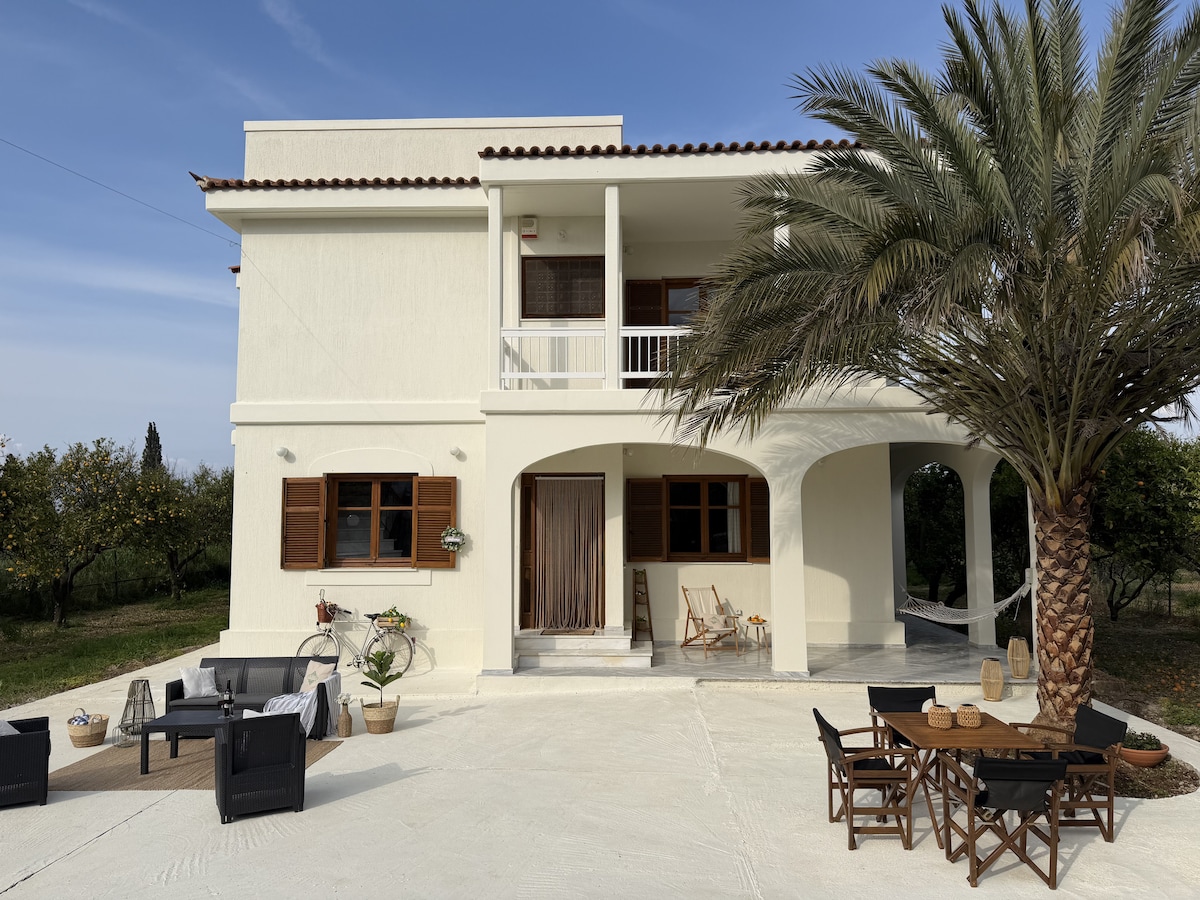 Contemporary private Akrata beach garden villa in Northern Peloponnese. Private access to the sea. Home designed to maximize interior light, sea and mountain views. Roof terrace, balconies and veranda. Experience authentic Greece in this beautiful area where you can rest, recuperate and recharge. Μοντέρνα βίλα στην παραλία της Ακράτας με αποκλειστική πρόσβαση στη θάλασσα. Μπαλκόνια με θέα θάλασσα/βουνό. Αυθεντική εμπειρία σε πανέμορφη τοποθεσία για ξεκούραση και αναζωογόνηση.