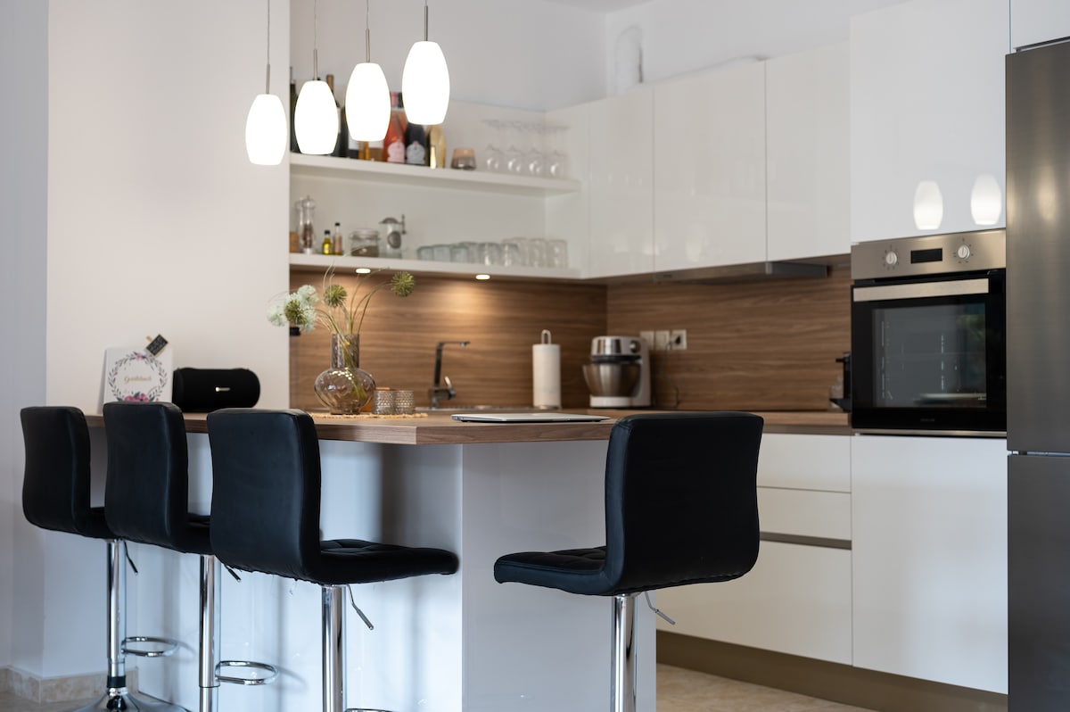 Our apartment is a newly built seafront penthouse that offers stunning views to the sea and walking distance to the beach. It can accommodate up to 4 people and it is perfect for a family/couple. The apartment has an open plan, living room area with fireplace, fully equipped kitchen with dishwasher, washing machine & clothes drayer, and fully equipped bathroom. A wooden staircase leads to the bedroom that has a queen size bed and a drawer. The living space opens to a huge seafront veranda.