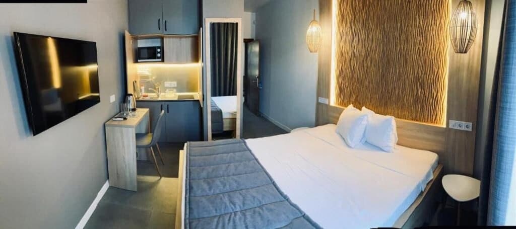 Номер площею 22 кв. м. У номері є холодильник, мікрохвильова піч, електричний чайник, електрична плита, набір посуду і столових приладів, обідній куточок, телевізор з кабельним телебаченням, Wi-Fi, кондиціонер, балкон (на кожному балконі є садові меблі, де можна відпочити і перекусити), сучасний санвузол з душовою кабіною. Номер категорії Стандарт ПЛЮС включає двоспальне ліжко-трансформер, яке за бажанням гостя може розсуватися у два односпальних ліжка, та зручний диван.