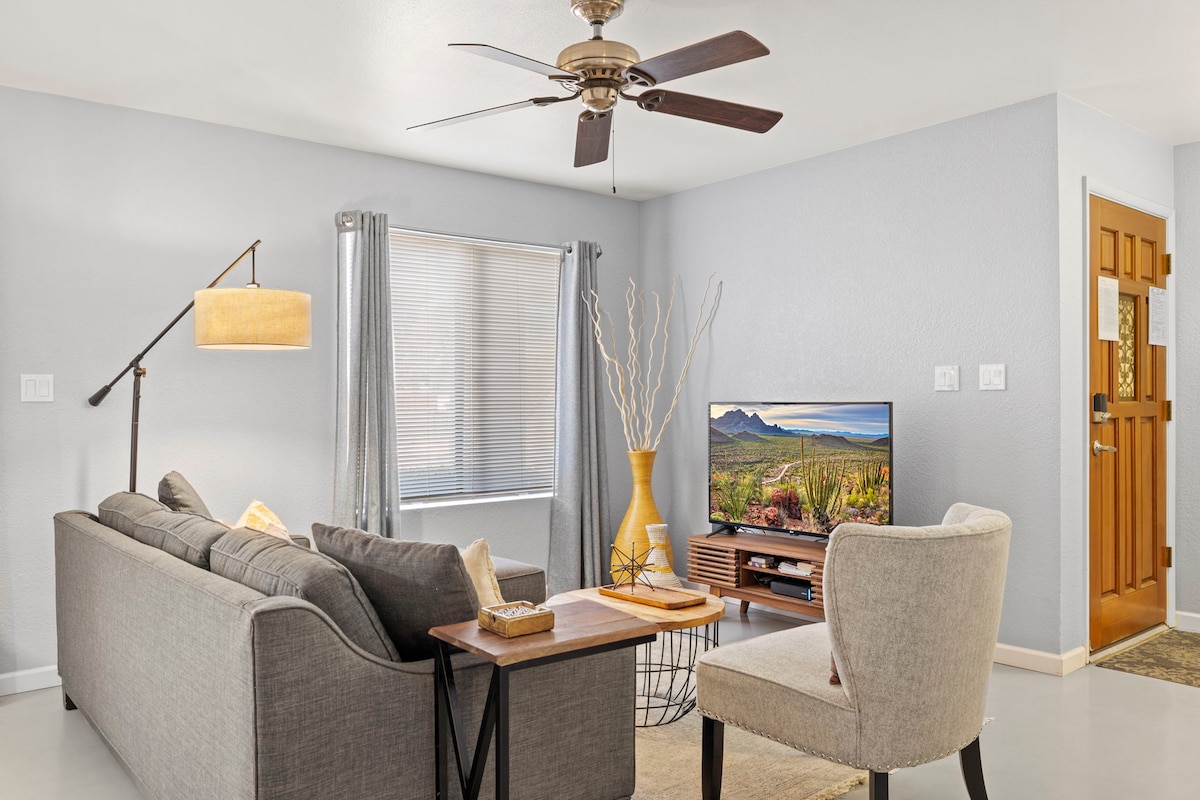 POOL TEMPORARILY CLOSED -JAN 5–16, 2026 Our pool will be closed for approximately two weeks for renovation. There will be renovation noise Mon-Fri, 9AM to 5PM, no work on weekends. Rates have been discounted to reflect construction. Step into 1958—revamped. This plush, first-floor condo in Scottsdale’s historic Garden District blends retro style with modern comforts. Enjoy the heated pool surrounded by banana and orange trees, and walk to Old Town's best restaurants, art, and entertainment.