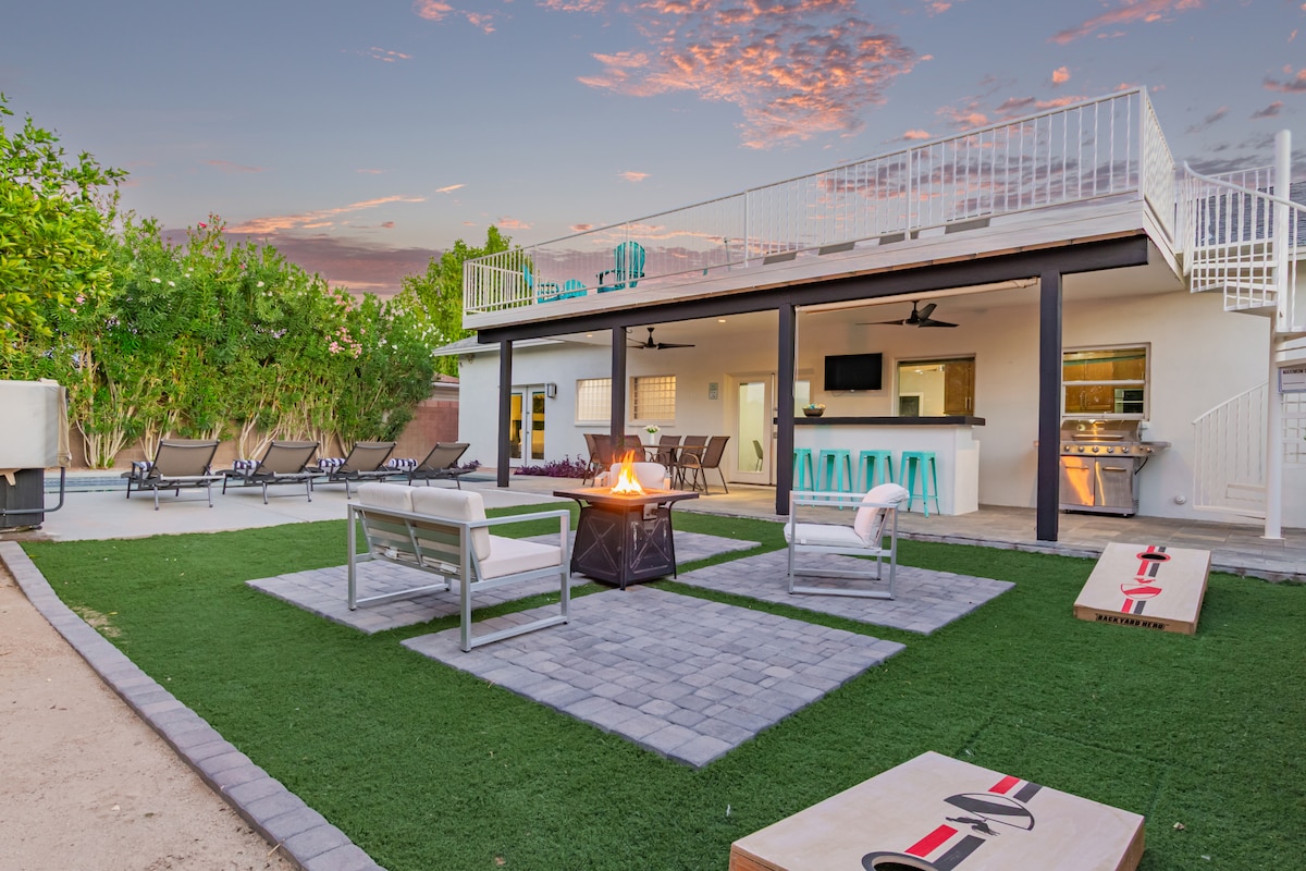 ➳ Walk to the heart of Old Town in 2 minutes (Seriously, as good as it gets) ➳ Sprawling backyard with heated pool and spacious hot tub ➳ Endless outdoor living space with fire pit, propane BBQ grill and dining area ➳ Two generous master suites and three bathrooms ➳ Collapsible wall in the living room for indoor-outdoor living Looking for something a little different? I’ve got 8 more top-rated Scottsdale homes, all 5 minutes or less from Old Town. Click my host profile to explore!