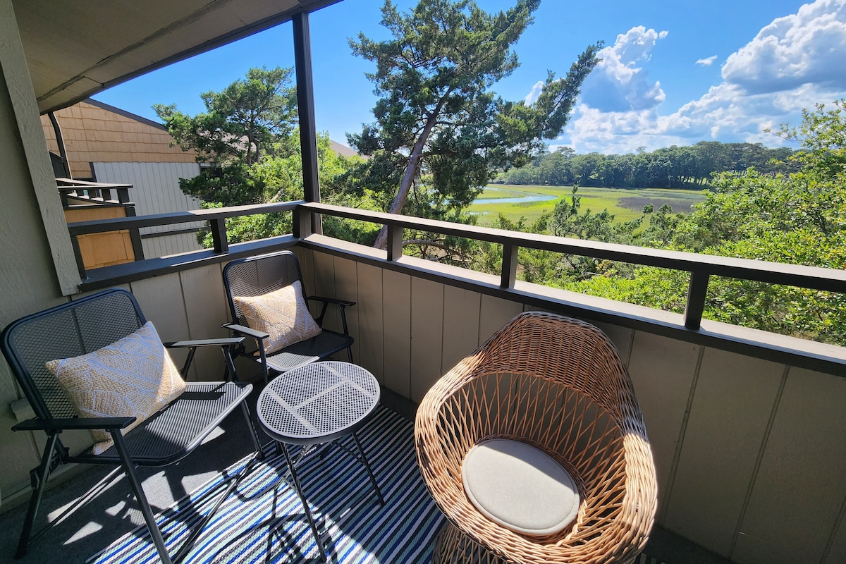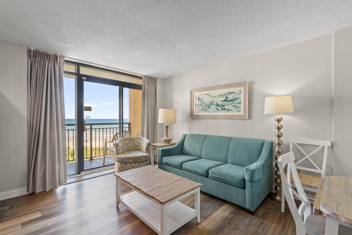 Kick back & relax in this stylish space perfect for couples. Fully updated luxury one bedroom, one bath condo with queen sleeper sofa. Bring your Kcups & enjoy coffee while gazing at the sunrise from the ocean front balcony. After a day on the beach take a relaxing shower in the spa inspired bathroom. Fully equipped kitchen for nights in. Sleep peacefully in the luxurious king bed. Close to restaurants, shopping, golf, and Barefoot Landing, SeaWatch is the perfect location for your getaway.
