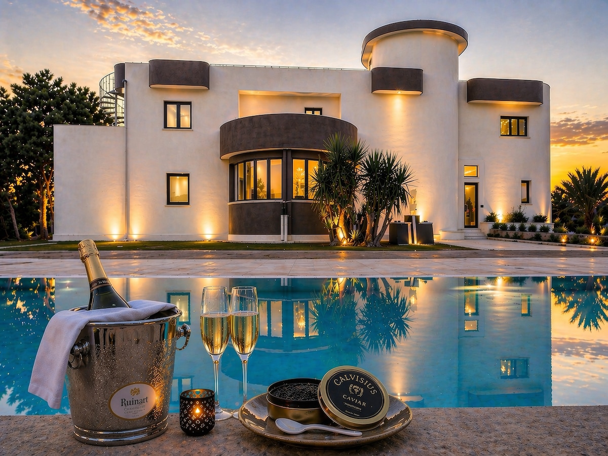 Gigasuite。海滨设计师别墅。泳池 + 水疗中心。20 张床