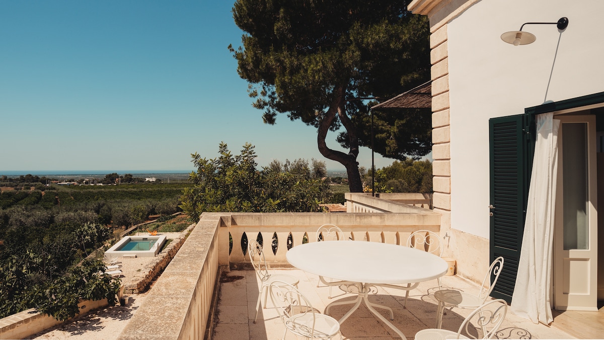 CIS: BR07401291000000188 CIN: IT074012B400033730 Vivi la magica sensazione di trovarti tra passato e presente: è una dimora storica! I pavimenti d'epoca e le pareti in pietra fanno da sfondo a un ambiente arredato con oggetti di design, vecchie ceramiche e mobili locali. L'ampio terrazzo privato, con solarium e doccia calda, saprà entusiasmarti: potrai rilassarti con un bicchiere di vino al tramonto, godere del sole su comodi lettini o preparare una cena in una magica atmosfera pugliese.