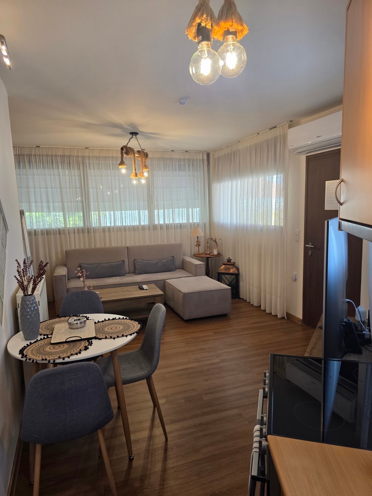 Καλαίσθητο διαμέρισμα 47 τμ., 2 δωμάτιων σε φιλική γειτονιά με άνετη βεράντα και έπιπλα εξωτερικού χώρου για χαλάρωση! Το διαμέρισμα βρίσκεται 5 λεπτά μακριά με το αυτοκίνητο από το κέντρο της πόλης και 1km μακριά από την πλησιέστερη οργανωμένη παραλία που προσφέρει ένα παραθαλάσσιο εστιατόριο και καφέ μπαρ. Η μοντέρνα διαρρύθμιση σε συνδυασμό με την καθαριότητα των χώρων σε μια ήσυχη και γαλήνια γειτονιά είναι αυτό που θα κάνει την εμπειρία της διαμόνης σας μοναδική και αξέχαστη.