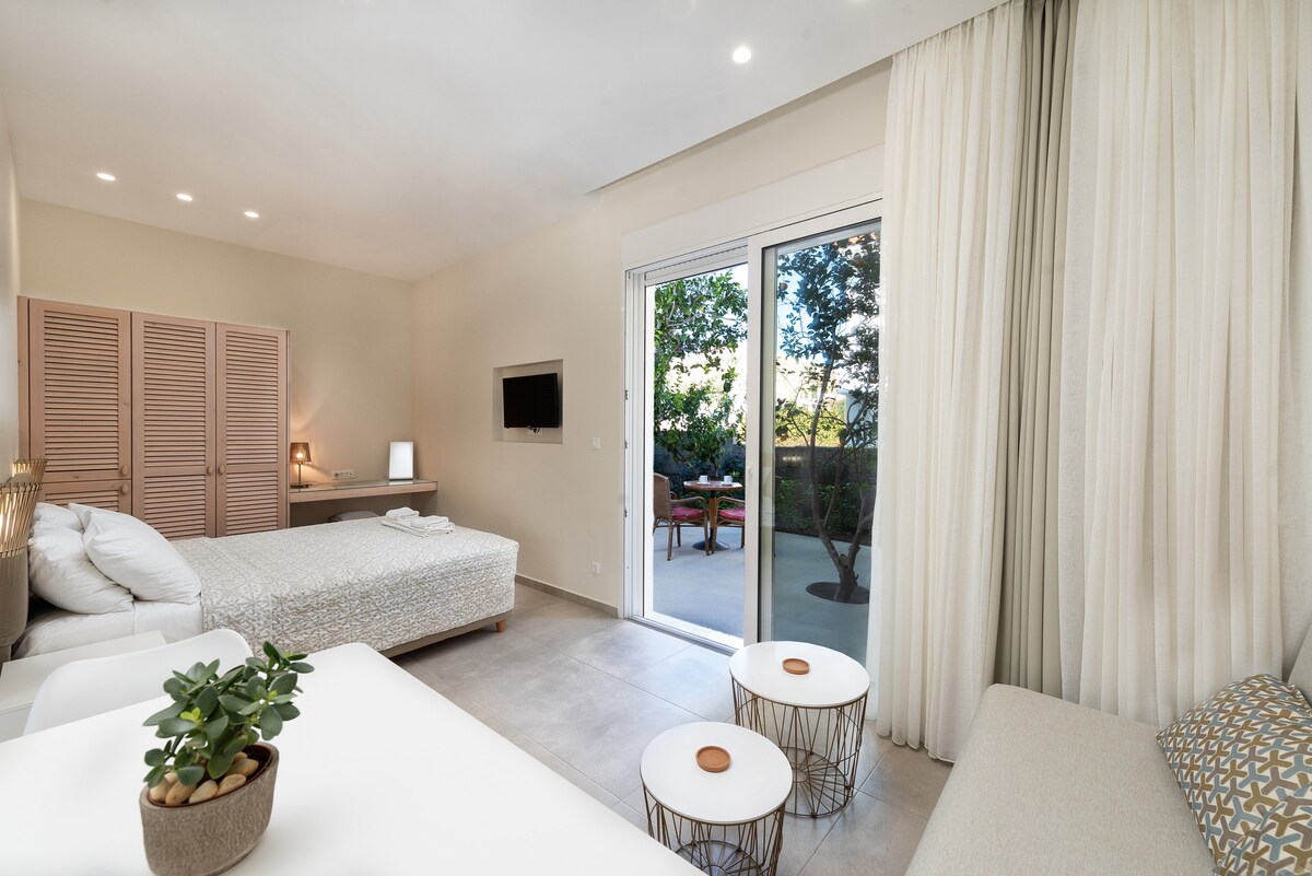 An accommodation that combines the Greek island character with the comforts of modern life. A peaceful retreat with an idyllic view of the Aegean Sea, offering the relaxation everyone seeks on vacation. Enjoy a private heated spa for ultimate tranquility, a cozy patio living room overlooking the sea, a fully equipped kitchen, a bathroom, and a bedroom with a double bed. Surrounded by a large Mediterranean garden with parking, it’s just 3 minutes by car or 10 minutes on foot from Stegna beach.