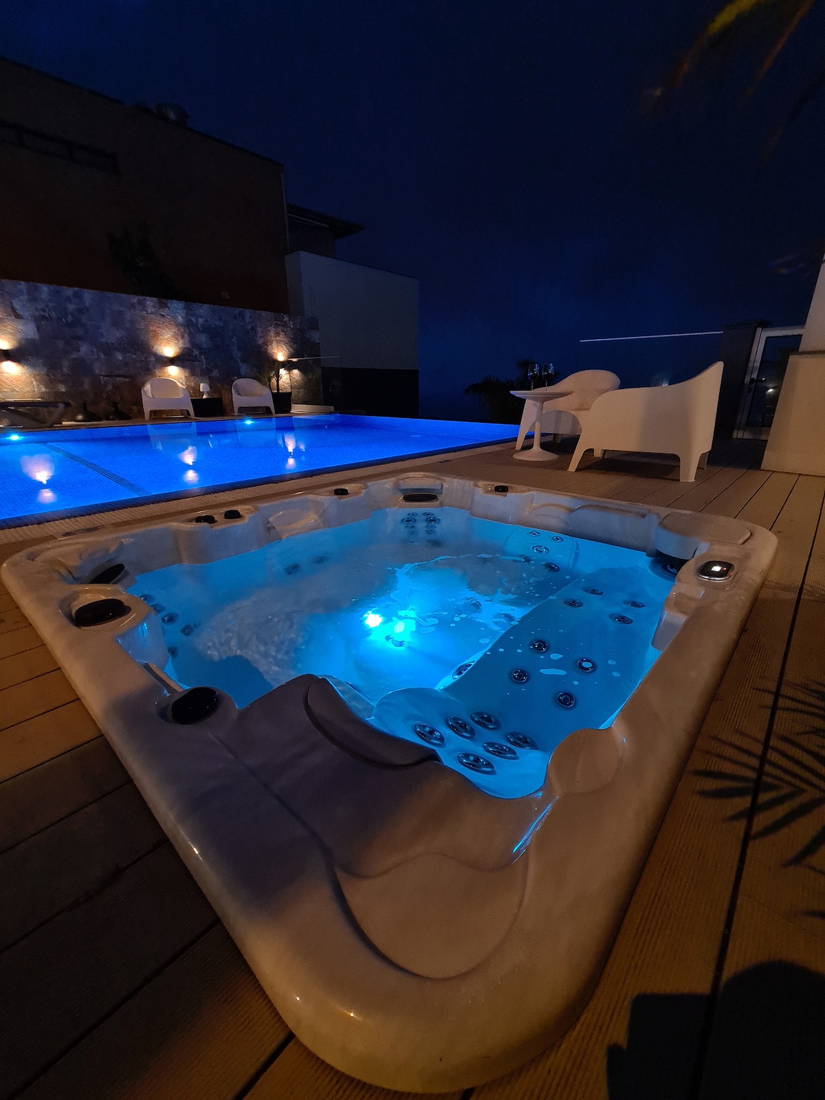 *Wi-Fi rápido! Download: 78.3 Mbps, Upload: 91.6 Mbps *Varanda ampla: 30m² *Área de churrasco *Jacuzzi quente a 38°C *Cozinha totalmente equipada *Estacionamento gratuito a 10 metros *Café e chá gratuito *Ar condicionado *Shampoo e Gel de banho *Roupões *Coluna de som bluetooth *Secador para cabelo