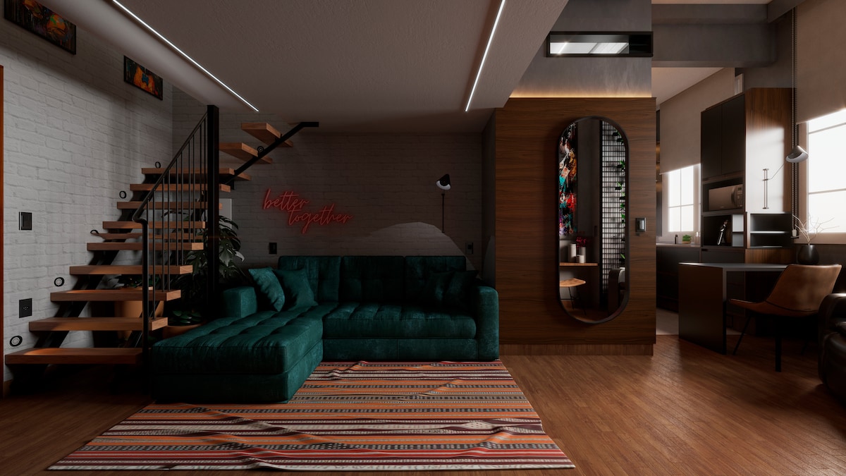 Romantic loft between Santa Teresa and Laranjeiras with panoramic views of Guanabara Bay, Sugarloaf Mountain, and Christ the Redeemer. Designed by us, architects and designers, it combines handmade furniture, art, and reclaimed wood. Perfect for couples, photo shoots, or special celebrations, offering charm, privacy, and easy access to Rio’s main attractions.