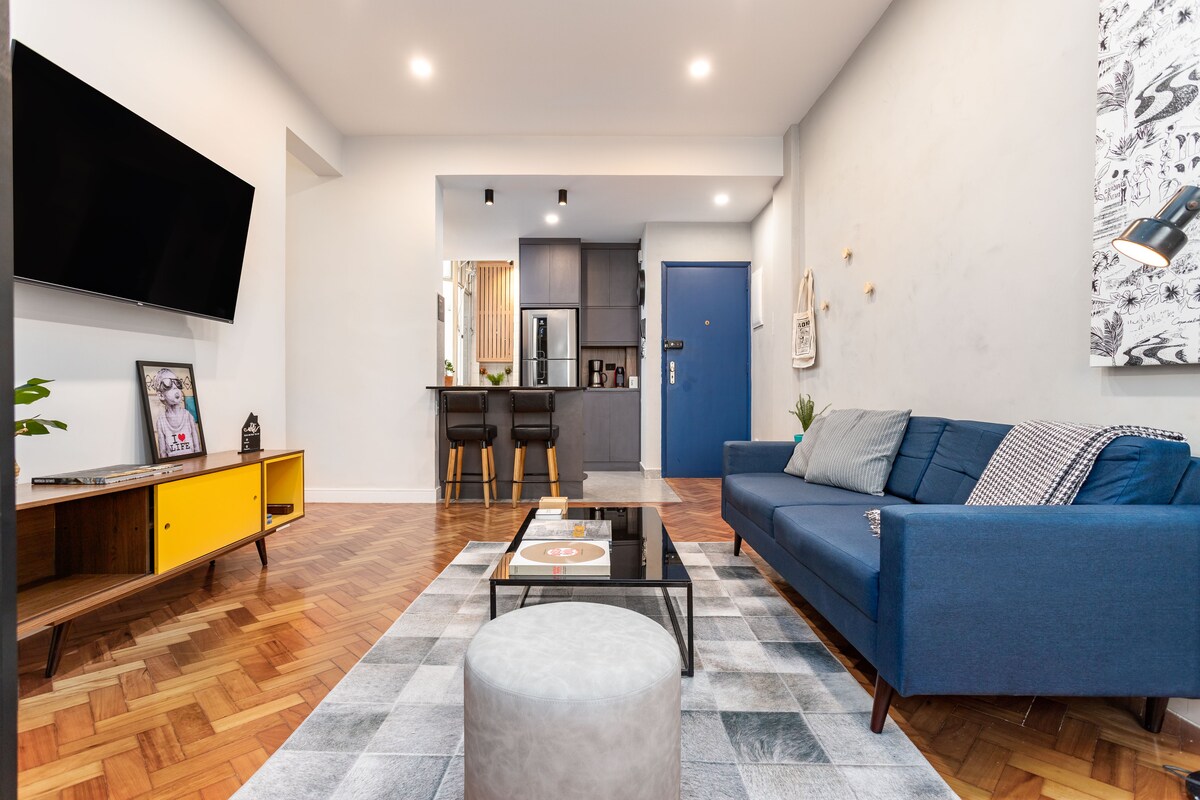 *Please read the house rules before booking.* Welcome to your perfect Rio getaway, where the authentic essence of Rio meets comfort and good taste. Just a few steps away from 3 of the most famous beaches in the world: Copacabana, Arpoador and Ipanema. Its location is really perfect! It’s equipped w/ 2 split A/C wifi 350mb queen size bed E-lock for self check in equipped kitchen 32" smart TV Levee chair (for beach or park) Hammam-style Beach towels Book now and enjoy your stay with us.