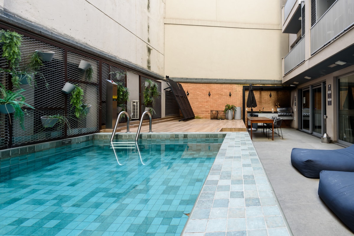 Se você busca se hospedar em um Flat moderno, aconchegante e sofisticado, esse local combina com o seu perfil. Sua vida conectada às facilidades do centro e ao estilo de vida da Zona Sul. - Fitness & Laundry Room equipados, Lounge Gourmet, Lounge Bar, Piscina, Proximidade com transporte coletivo.