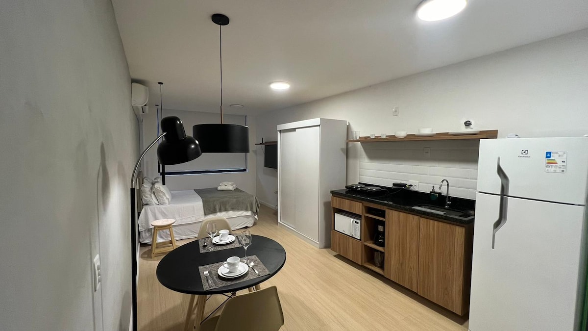 Se você busca se hospedar em um Flat moderno, aconchegante e sofisticado, esse local combina com o seu perfil. Sua vida conectada às facilidades do centro e ao estilo de vida da Zona Sul. - Fitness & Laundry Room equipados, Lounge Gourmet, Lounge Bar, Piscina, Proximidade com transporte coletivo.
