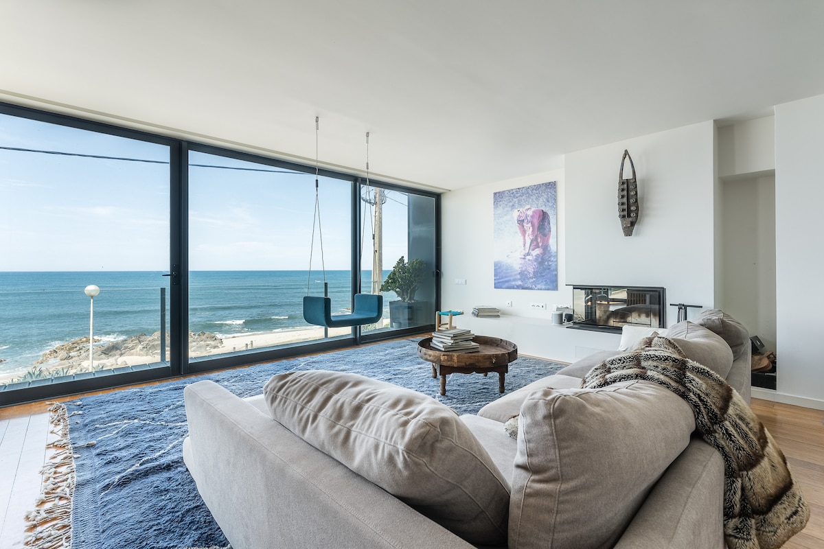 Apartamento Duplex de luxo para 6 pessoas, situado na primeira linha do mar, frente à praia de Salgueiros, de áreas generosas, decorado com uma fusão entre o moderno e o clássico. Lugar ideal para férias ou estadia de curta duração e também um excelente lugar para viver.