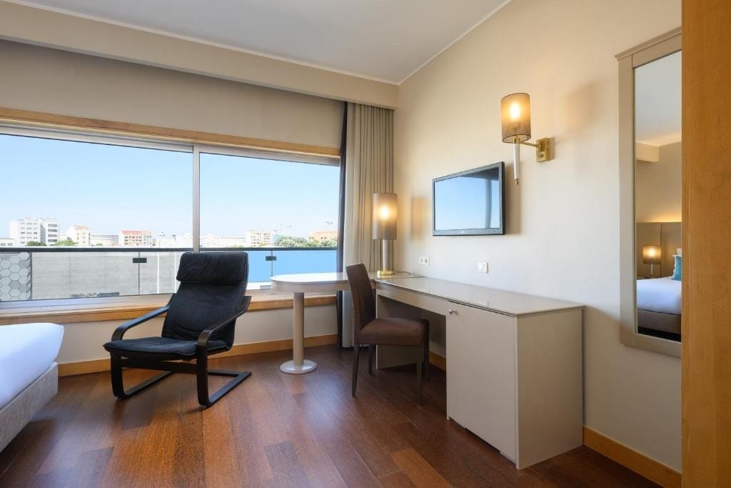 De design contemporâneo em tons neutros, este quarto com 20m2 detém de uma cama de casal ou duas individuais com vista para a cidade. Para ocupação máxima de 2 adultos, este quarto possui casa de banho privativa, ligação gratuita ao WiFi, televisão plana com canais por cabo e satélite, ar condicionado, comodidade para fazer chá e café e um pequeno frigorifico.