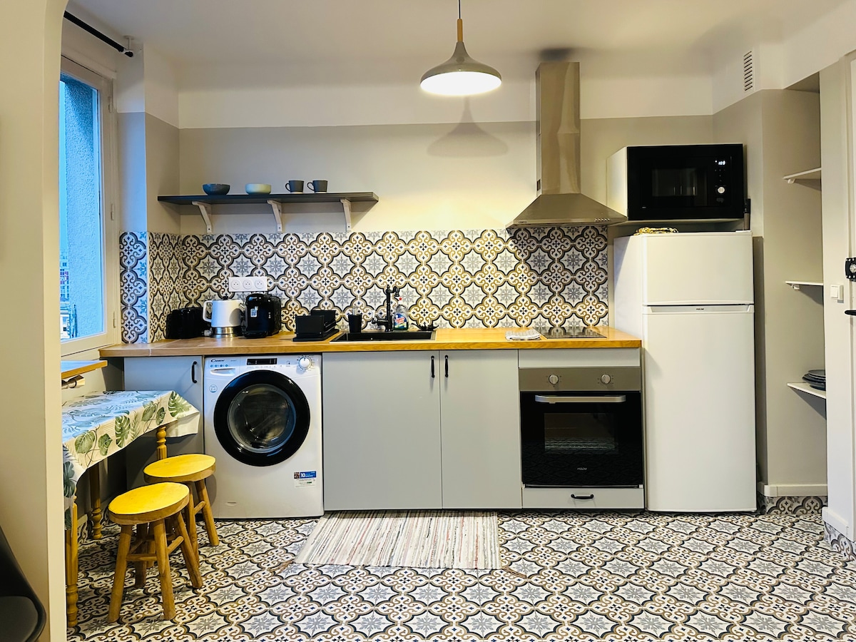 Appartement cosy de 30m2, situé dans une résidence sécurisée avec Digicode. Lorsque vous entrez dans l'appartement, vous avez la cuisine à droite, la salle de bain en face, puis un salon avec TV et Wifi, ainsi que quelques livres (adultes et enfants) à disposition. La chambre se situe au bout de l'appartement, avec un lit 140X190cm, et un lit parapluie si besoin. Les draps et serviettes sont fournis. L'appartement donne sur une petite cour face aux box (pas de passage de voitures). Peu de bruit.