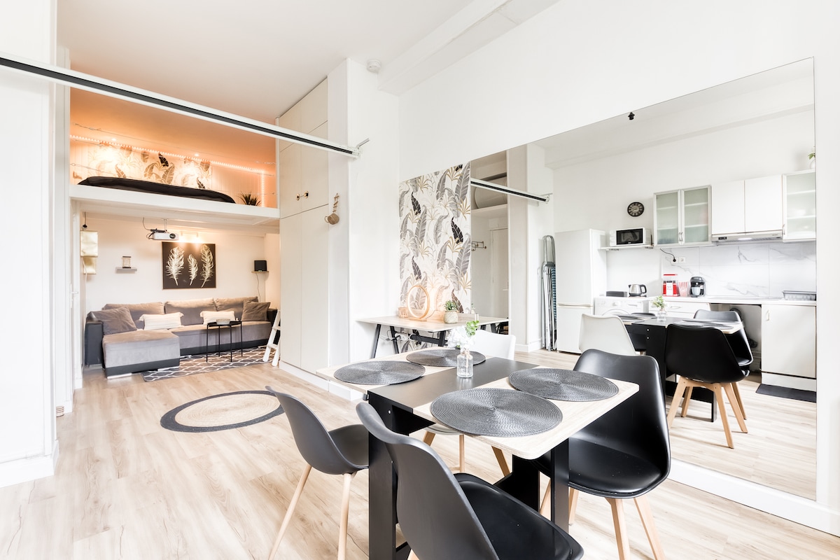 Offrez-vous une escapade unique dans un loft cosy à deux pas de Paris ! ★ Totalement équipé pour un séjour détente ou professionnel : - BAINS A REMOUS - VIDÉOPROJECTEUR pour des NETFLIX inoubliables - cuisine entièrement équipée - WIFI GRATUIT ★ Emplacement idéal : - RER B, Paris et Maison des Examens accessibles à pieds. - Banques, pharmacies, restaurants et hypermarché à 2 minutes à pieds.