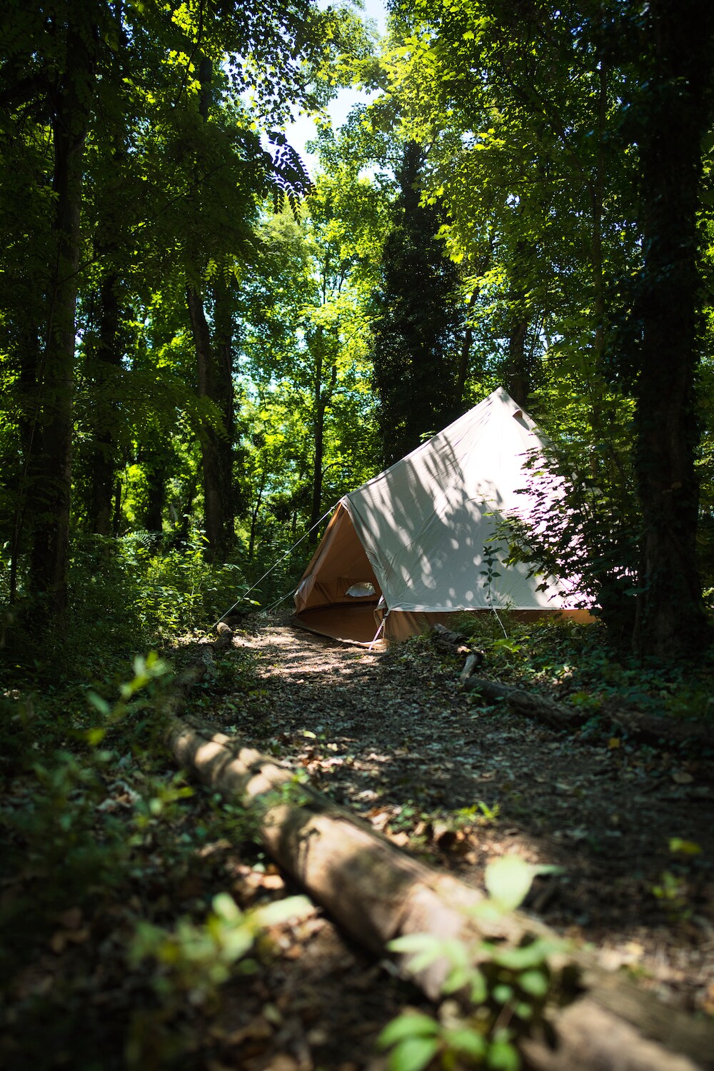 MICA, tente équipée tout confort 12 m² pur coton, rivière à 5 min à pied. Un lieu hors du temps. Sur le même lieu LA COLLINE VAGABONDE : 1 autre tente, une cabane sur pilotis, 1 maison indépendante. La tente, installée à flanc de colline entre pins et châtaigniers. Belle rivière à 5 minutes de marche. Ici nous vivons simplement et en harmonie avec la nature, nous aimons aussi confort et propreté. Cuisine équipée partagée, eau courante et chaude Salle d'eau et WC sec partagés par 2 couples max.