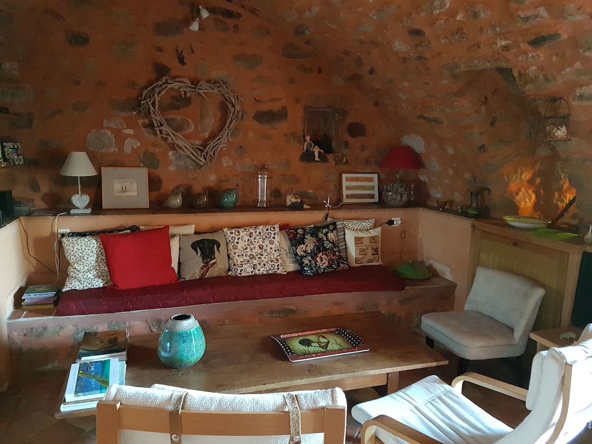 翻修过的石屋,安静,有景观,游泳池