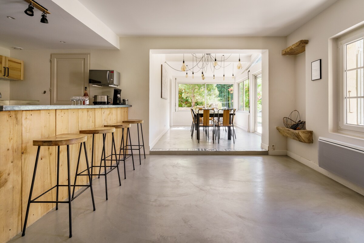 🌟 "A l'ombre du tilleul" ... un joli mas moderne et typiquement provençal, qui offre tout le confort ! Un lieu agréable pour se détendre. L'extérieur comprend une cour intérieure avec espace pétanque, une belle terrasse ombragée avec un magnifique tilleul, un barbecue, un joli jardin arboré, une agréable piscine, une table de ping pong ainsi qu’un bar pour vos tranquilles soirées estivales. La maison est également équipée d'un baby foot, de livres (adultes et enfants) et de jeux de société.
