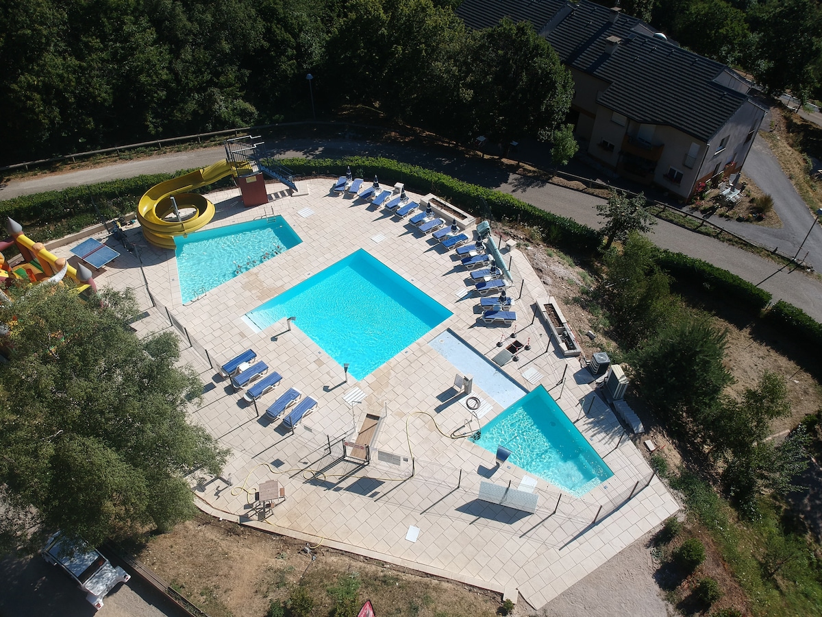 Notre logement est idéal pour les personnes désirant se reposer, en couple ...Spacieux pour 51 m2 il vous apportera un confort pour vos moments de détentes, Pour les sportifs salle de gym et après le sport Billard. 1 animal de compagnie Maximum est acceptée avec plaisir.. Mais nous refusons les rats et les serpents.. Merci... La terrasse en bois et la cour privée donne sur la piscine