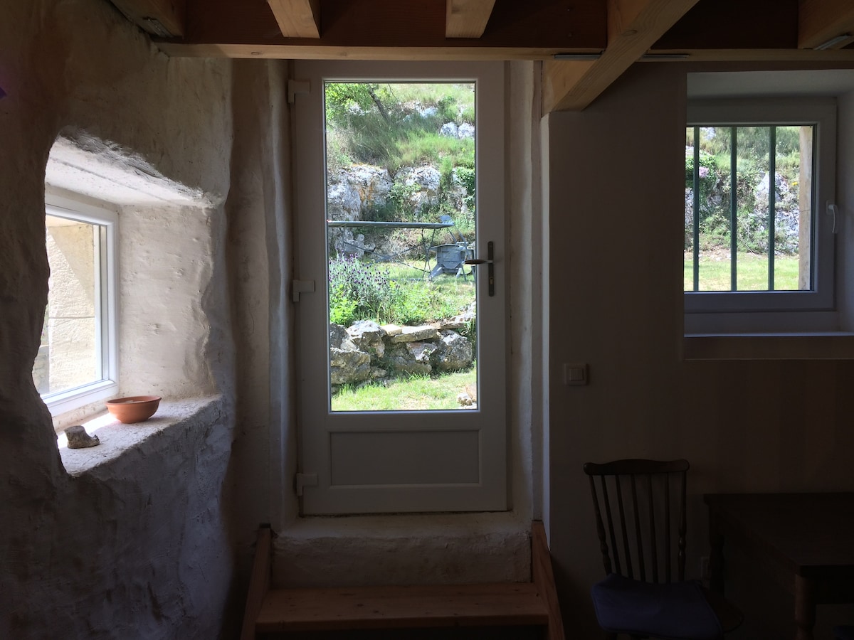 Gîte pour 2 à 4 personnes de 30 m² - Une chambre mansardée avec deux lits simples - Une mezzanine avec un canapé convertible équipé d'un bon matelas - Une salle de vie avec cuisine équipée (frigo, plaques à induction, four, cafetière, grille pain, vaisselle) - Une salle de bain avec douche Le gîte se trouve à 5mn à pied du centre du village de Boffres. Le GR420 passe juste devant le gîte, idéal pour les amateurs de randonnée et de cyclisme !