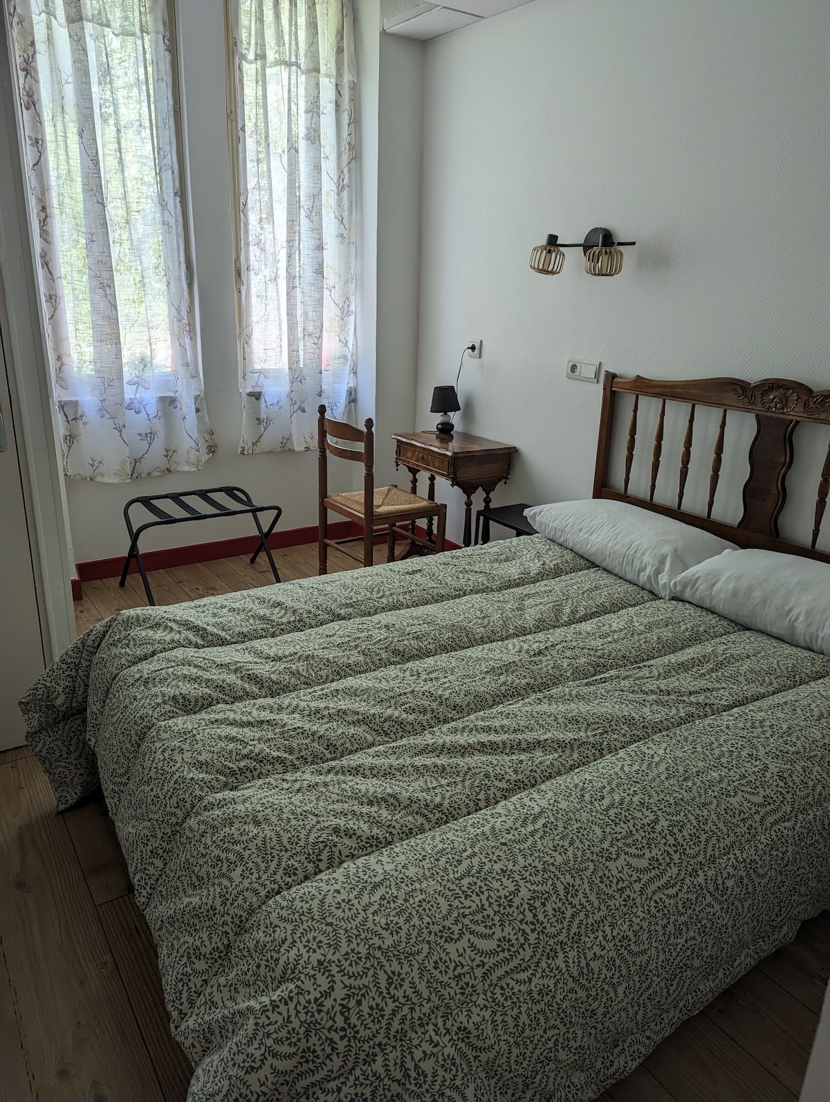 Chambre spacieuse située au deuxième étage de l’hôtel avec jolie vue sur le village et sur le jardin intérieur. Le petit déjeuner ,servi de 8 à 10 heures, est inclus dans le prix total du votre séjour.