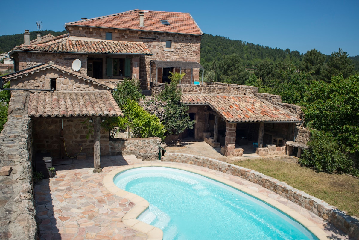 The house is located in a hamlet in the hills of the Drôme department. The house is over 140 m² with 4 bedrooms, a large living room, and a kitchen with a large dining table. All beds are modular: 8 singles or 1 queen-size (160 cm) and 3 king-size (180 cm). There is a bedroom on the ground floor with a private shower. On the first floor are the 3 bedrooms and the bathroom (with a bath and separate shower). The swimming pool is shared with the 3 other houses in the hamlet.