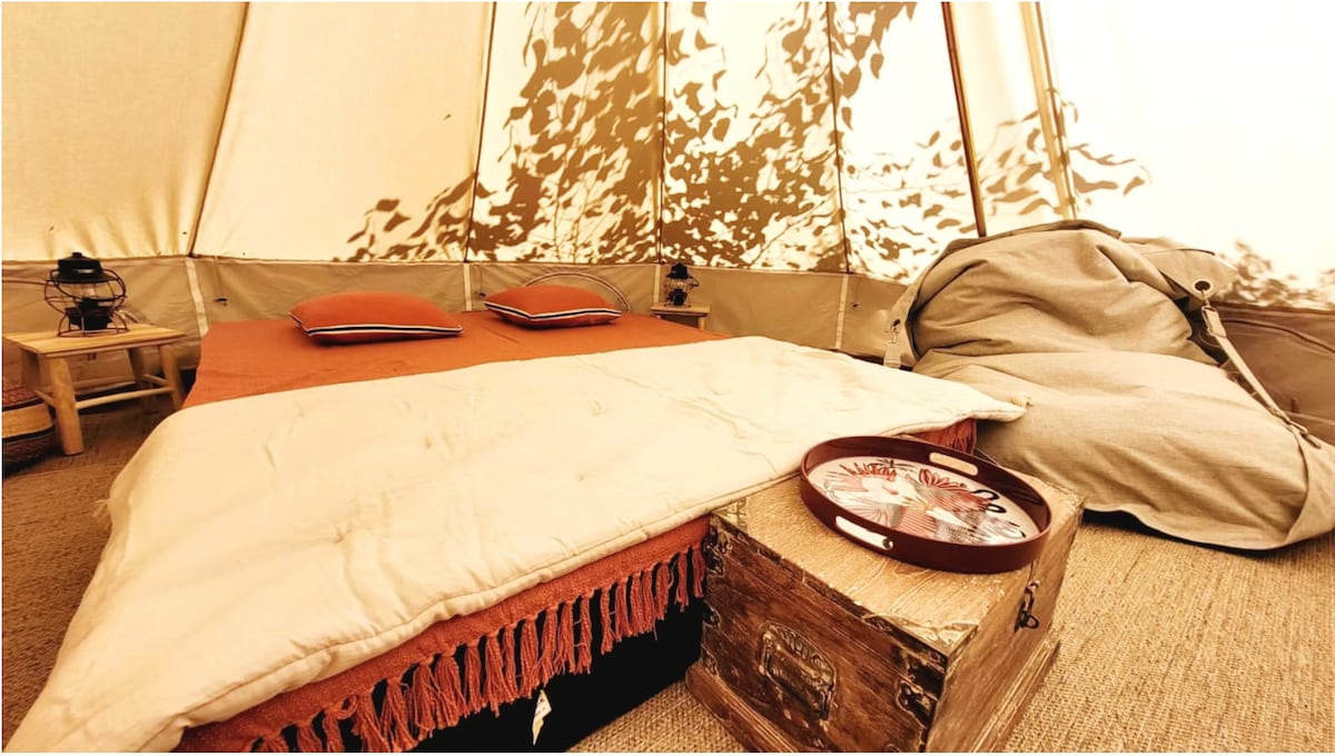 Envie de repos en duo! en plein cœur de la nature. Nous vous proposons cette tente équipée nouvelle génération. dans un cadre paisible entre arbres et végétation venez vous reposer le temps d une nuit ou plusieurs nuits . accès par sentier environ 5 minutes de votre voiture. Prévoir baskets ou chaussures rando.possi bilite d accès au jacuzzi et une secret room sur réservation et supplément nous demander , ainsi que petits déjeuners servie au pied de la tente.