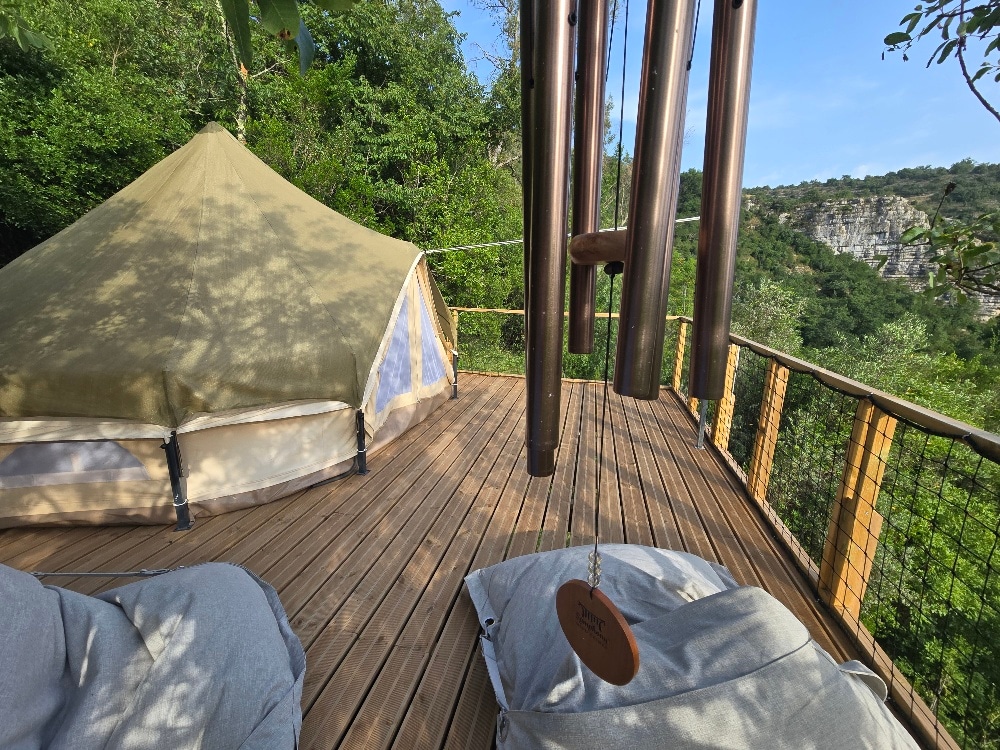 Between water, sky and earth, our site is located in the heart of nature in the heart of southern Ardèche in an authentic and preserved landscape. Live the experience of a moment of total disconnection, where you are invited to slow down and enjoy. You can enhance your stay with a yoga and meditation class, accompanied by your host, a qualified teacher, receive an energy treatment or a massage (not included) Breakfast can also be taken on site on request. (10€/pers)