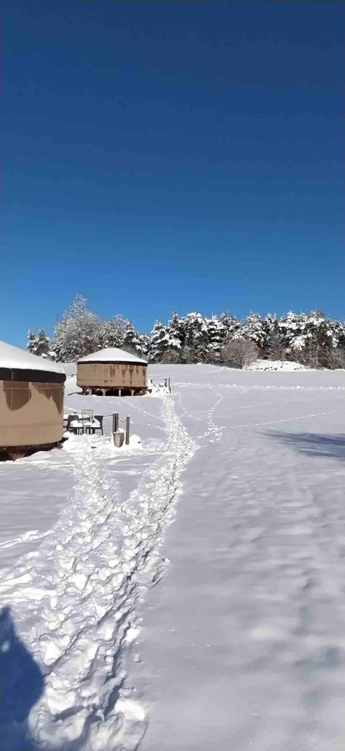 La yourte - un espace sacré empli d’harmonie et de beauté au cœur de la nature, très lumineux avec ses 5 grandes fenêtres, surplombe la rivière. salle de bain à partager. Information pour avril : Les températures sont douces au mois d’avril. Pour les hivers plus tardifs, et afin de profiter au mieux de votre séjour, le prix de la nuitée sera majorée de 5€ pour les frais de chauffage sur le mois d’avril. Le chauffage est compris dans le prix des nuitées pour le reste de la saison hivernale.