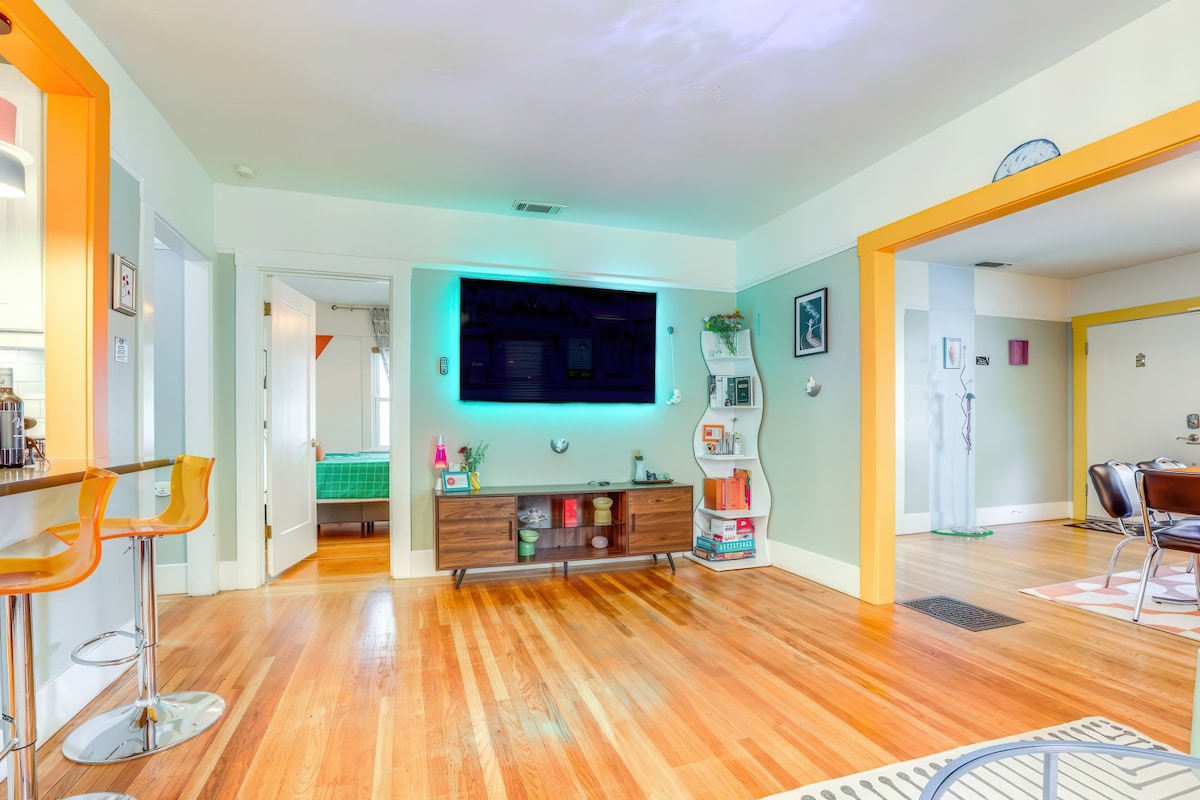 Step Back in Time: Experience the Nostalgia of the 1950s in This Charming Home with Vintage Decor! Savor Your Morning Coffee in the Cheerful Coca-Cola-Inspired Kitchen and Stream Your Favorite Movies on the 55 in. Smart TV. Work Remotely at the Writing Desk with High-Speed Internet. The Marilyn Monroe and Audrey Hepburn-Inspired Bedroom Provides a Peaceful Haven with Blackout Curtains and Comfy Queen-Size Bed. Plus, Enjoy a Private Backyard and Indoor Laundry Room. Walk to McKinley Park & Cafes!