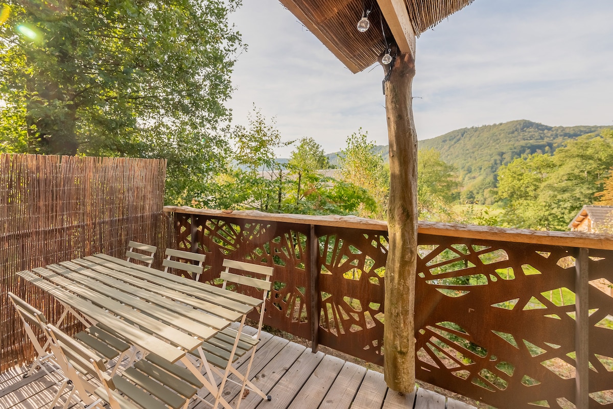 Nichée au cœur d'une forêt, notre cabane au confort 5 étoiles vous attend de l'autre côté d'un pont de plus de 20 mètres. Ici, pas de voisins. Une baie vitrée effet miroir vous offre une vue imprenable sur un paysage calme et relaxant, sans craindre d'être observé. À la nuit tombée, une fois blotti dans votre lit douillet, vous aurez le choix entre observer les animaux ou regarder un film sur notre rétroprojecteur.. et avec notre ciel étoilé, c'est comme si vous dormiez à la belle étoile. ✨
