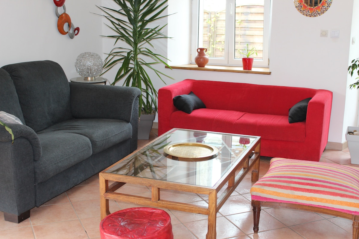 Nous nous situons dans un petit village des Crêtes Préardennaises. Vous apprécierez nos paysages tranquilles et verdoyants. Vous disposerez du jardin d'hiver équipé d’une kitchenette, avec une entrée individuelle de plain pied, un coin détente et la table du petit déjeuner (en option, 7€/pers) . La salle de bain est attenante aux deux chambres. Vous pouvez n'en louer qu'une, l'autre sera inoccupée. Option animal de compagnie (5€) , 2° chambre si vous louez pour 2 (10€) à régler sur place.