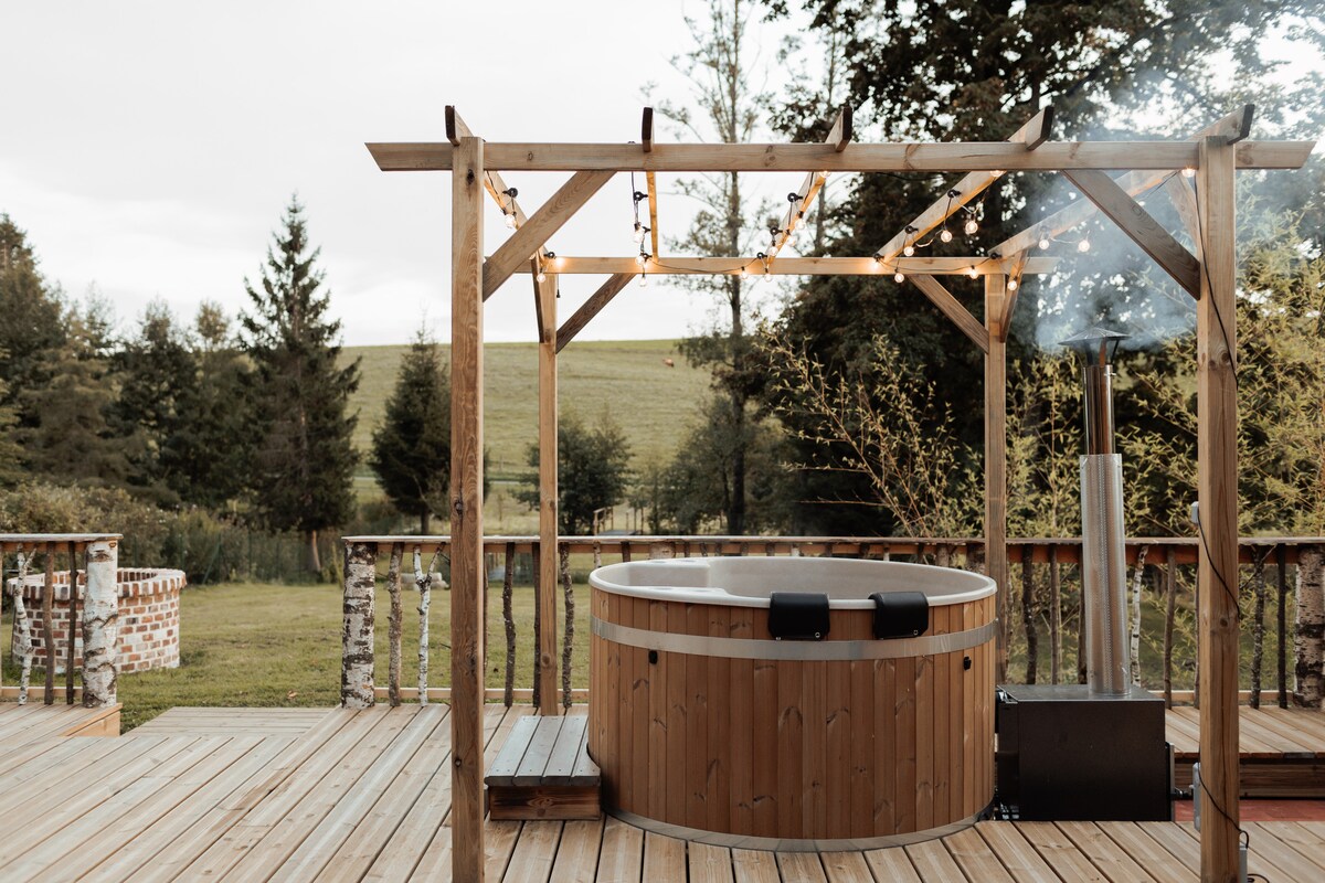 The Cabane à l'Ombre des Charmes is a 45m² cabin set in 2000m² of private grounds planted with trees. It sleeps 2 adults and 2 children on a sofa bed. On the large terrace, you'll find the Nordic bath with wood-fired heating, as well as the sauna right next door. A barbecue kota is available for your packed lunches. In the cabin, you'll find a lounge area, a kitchen area, traditional toilets and a bathing area with an island bath.