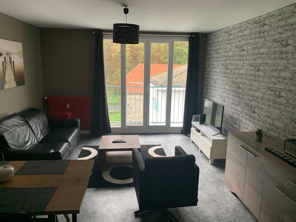 Appartement chaleureux à Sedan, à proximité immédiate d'un centre commercial ainsi que de la gare , à quelques centaines de mètres de la voie verte, et à 15 minutes à pied du centre historique. Une agréable terrasse de 13m² agrémente ce bien, composé d'un espace nuit (avec rangement et penderie) , un séjour lumineux avec un espace bar/cuisine , un bureau et un canapé convertible. Vous trouverez une salle de bain avec une grande douche et une machine à laver. Idéal pour court et moyen séjour.