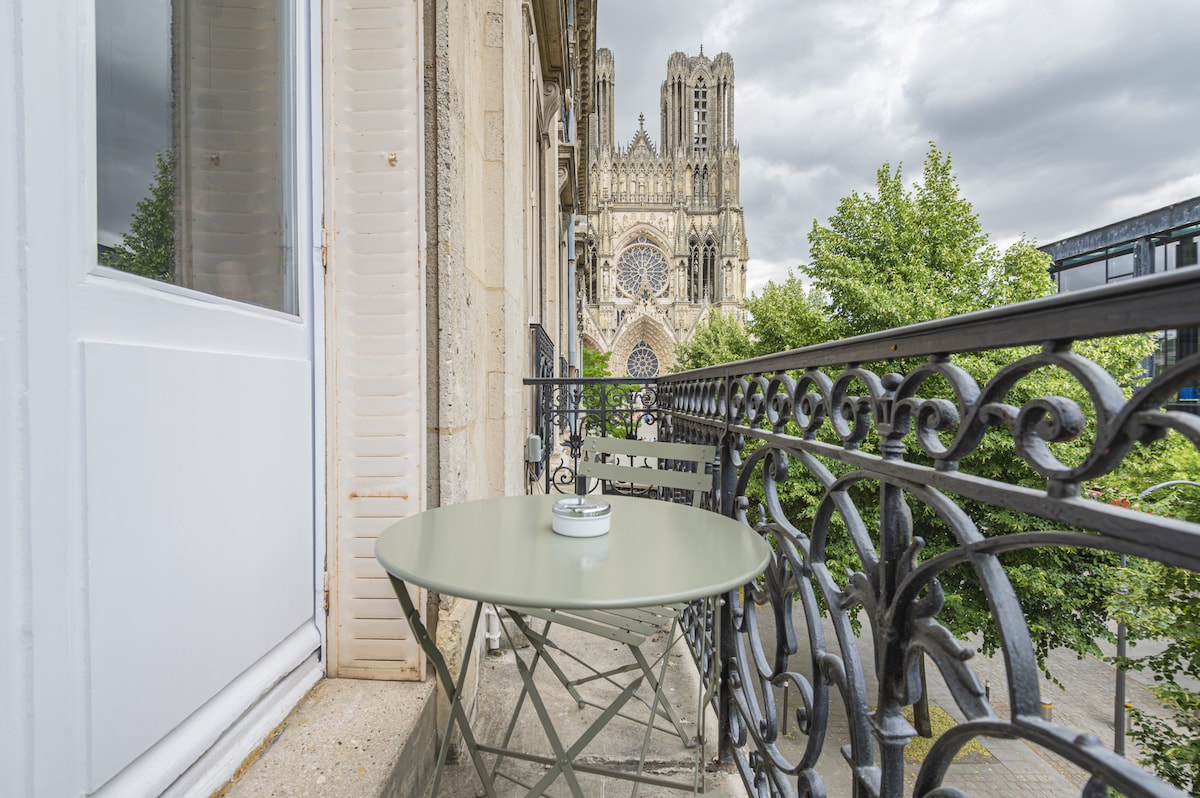 An exceptional address at the foot of Reims Cathedral Treat yourself to a unique stay in a refined apartment nestled on the prestigious cathedral square. This place of timeless charm can accommodate up to 4 travelers, combining comfort, elegance and an exceptional location. Experience Reims differently, at the heart of its history and excitement. Free covered public parking 100 m away for one vehicle.