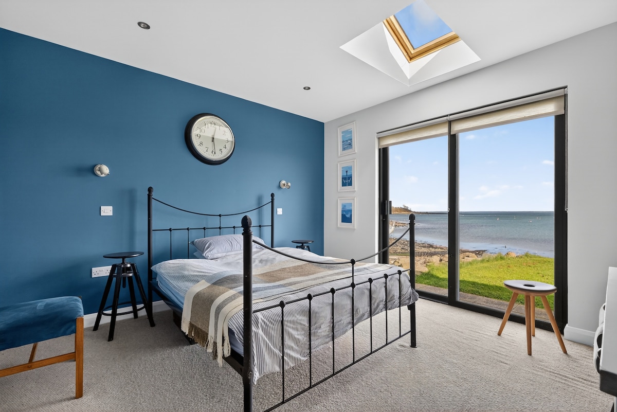 Newly renovated luxury studio on the waters edge. Striking black clad detached property, hot tub. Sleeps x2 people. X1 king bed. South facing with great views across Strangford Lough to the Mourne mountains. High end Scandi-finish. Tourist board registered. 20 minutes from Belfast city centre & city airport. Public transport connections only minutes walk from our front door. Wake to the sound of waves & wild life and experience jaw dropping sunrise and sunsets without getting out of bed.