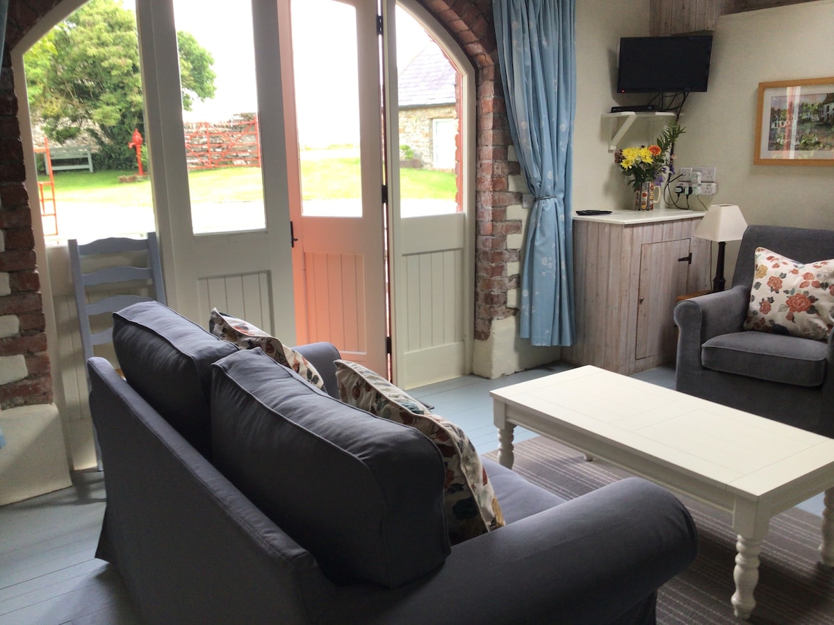 Unique shed conversion with views to the Mourne mountains. A tranquil location situated on our 10 acre equestrian yard but close to Downpatrick and Crossgar with shops, eateries and pubs. A quirky property with two double bedrooms, open plan living/dining with a wood burning stove and fully equipped kitchen. The equine theme is evident in the design. There's a private south facing garden with access to all of our site with panoramic views over Co Down. Off road parking. Horses and dogs welcome.