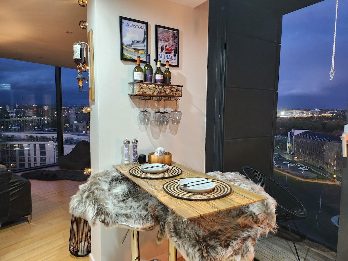 Centrally located building in New Islington. 2 minutes from the marina and the bars and cafes there. Panoramic views of greater Manchester, peak district and Etihad stadium (Manchester City football team). Cozy balcony with beautiful views of the sunrise for breakfast. 10 minutes walk or 1 tram stop from Piccadilly train station and the city centre. 5 minutes walk to Ancoats and the Northern Quarter. Fast hyper optic WiFi. Please note. This is a residential building, so no parties permitted